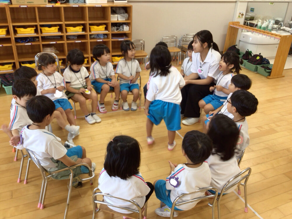 ルールを聞いて、難しそうな表情を浮かべていた子どもたちでしたが、遊びが始まり果物の名前が呼ばれると、元気いっぱいに椅子を移動して笑顔があふれていました。