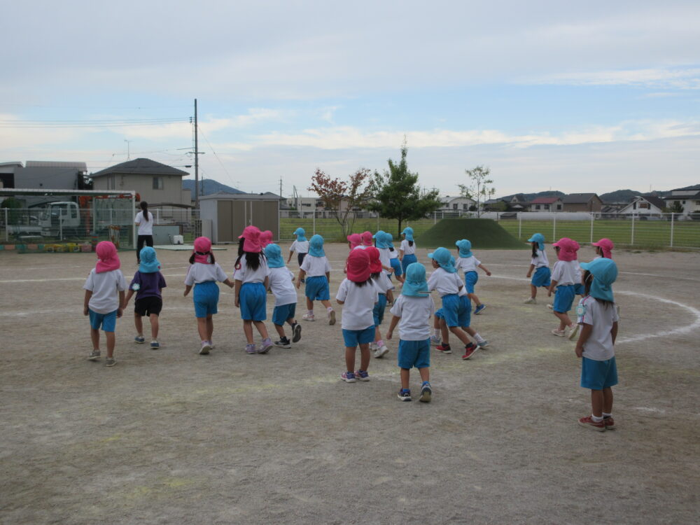 みんなで「だるまさんが転んだ」をしました。