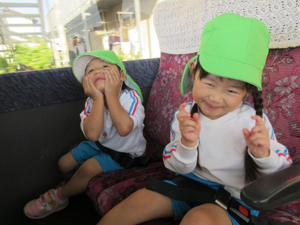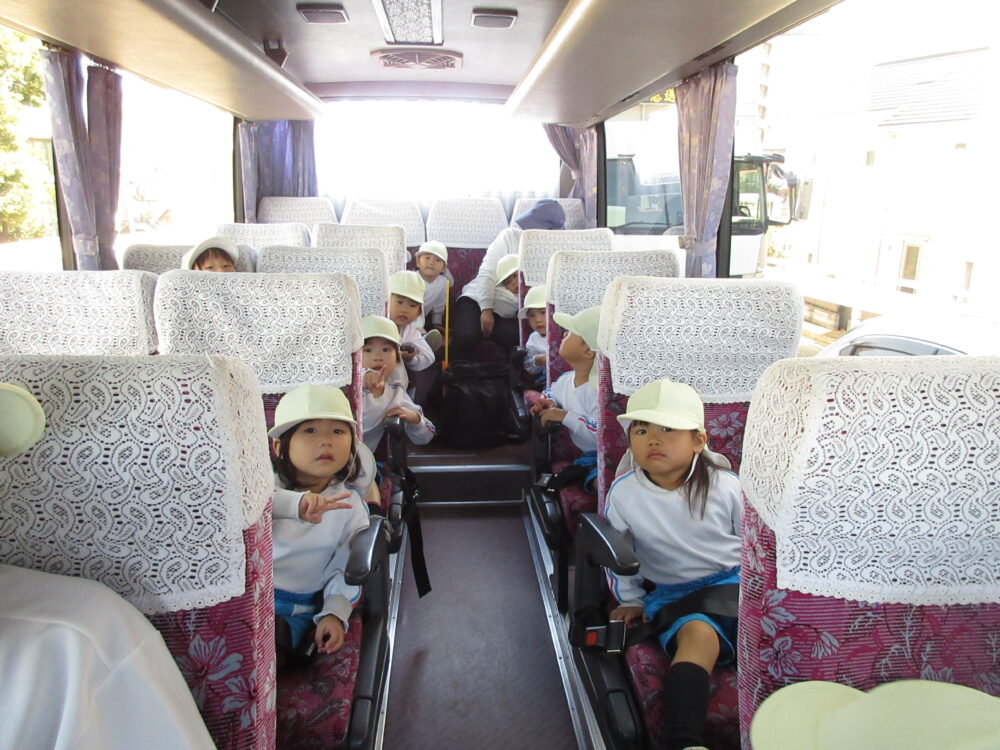 バスのなかでは、お外を眺めたり歌を歌ったりして楽しんだよ!