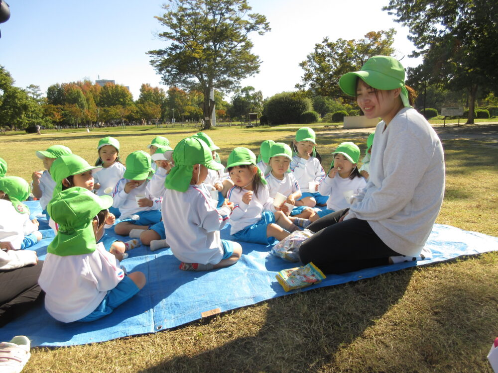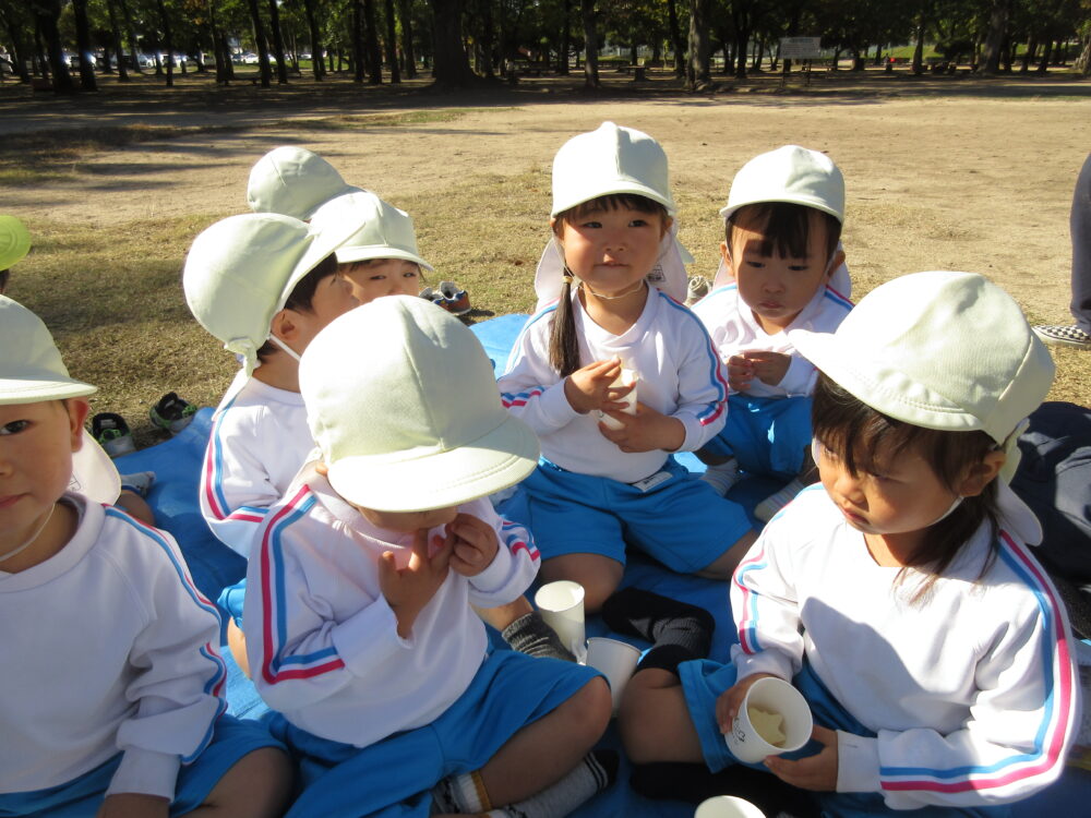 ぽかぽかのお外で食べるおやつは、とっても美味しかったね