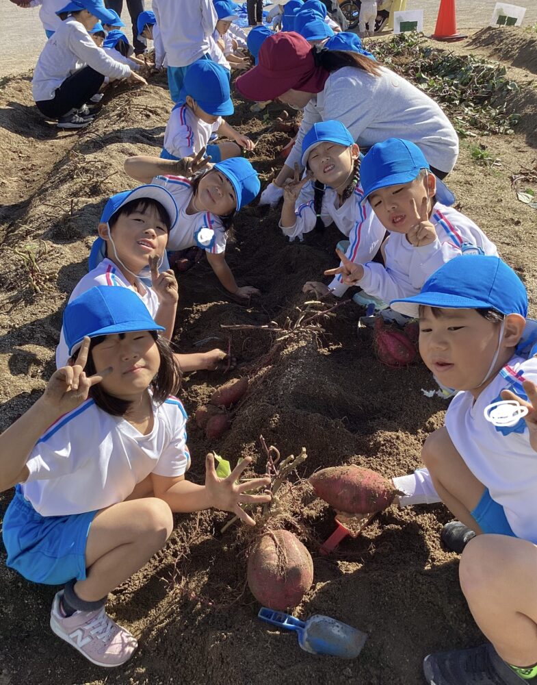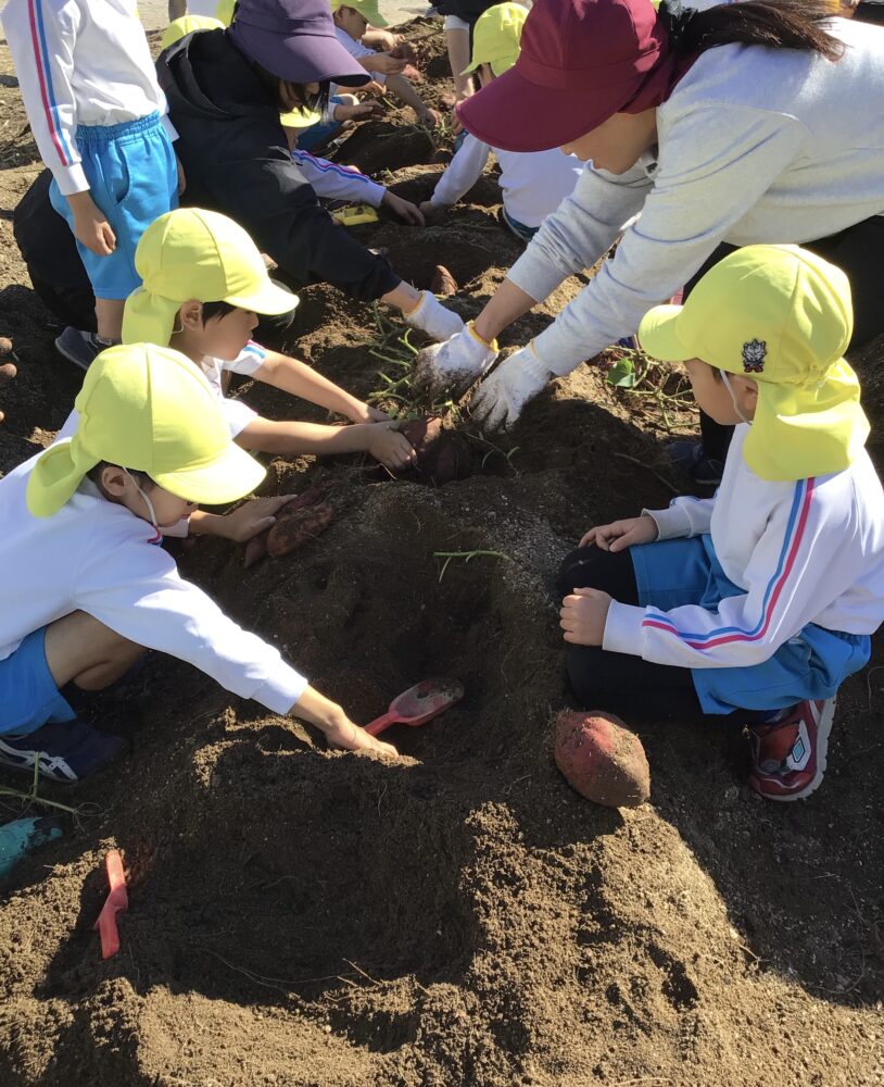 土をかき分け掘り進めると、大きなさつまいもの顔が見え、「あった!」と嬉しそうでした![]()