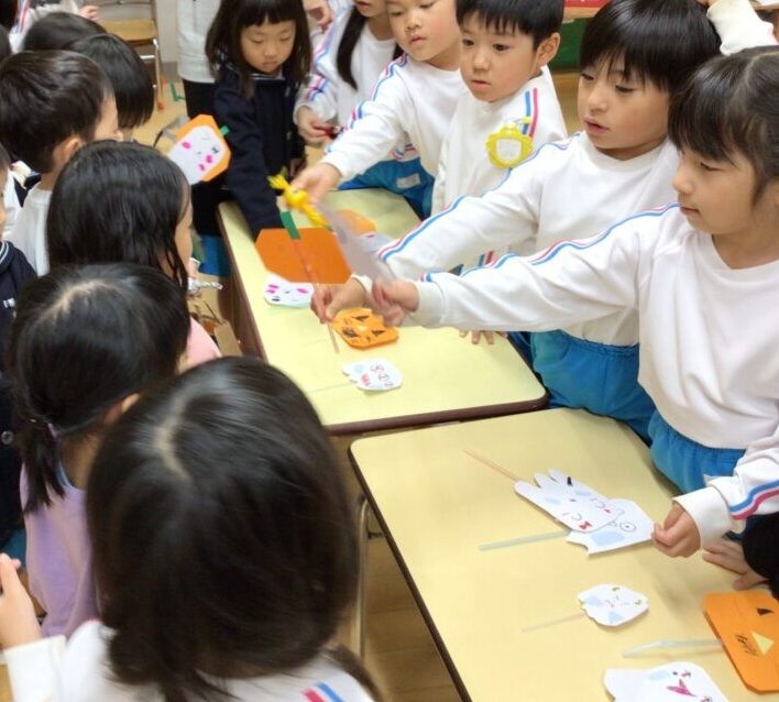 4歳さんはコウモリのステッキを、3歳さんは素敵なバッグを作り仮装しました!