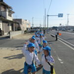 お散歩に行くと、園庭の畑でお芋を見ていたみかん組さん。