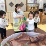 指先が器用になってきたいちご組さんです。両面テープを剥がしてペタッと貼るのが上手になってきています✨