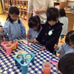 玉入れでは、かごをめがけて一生懸命に投げました。なかなか入らないときもありましたが、すぐ地面に落ちている玉を拾ってたくさん投げました![]()