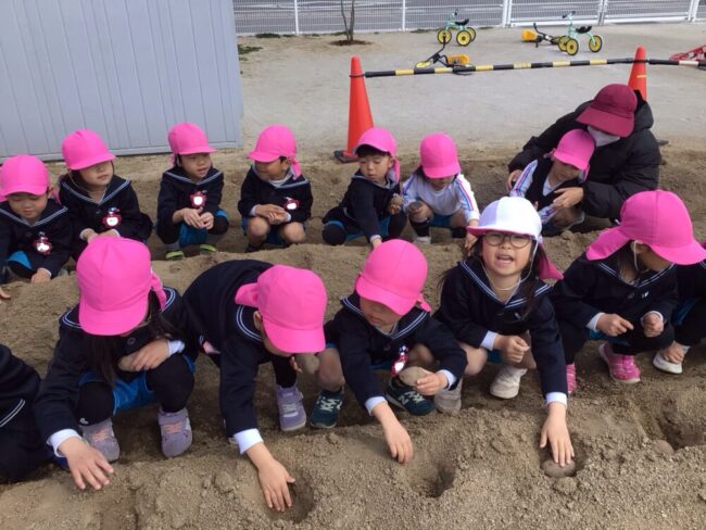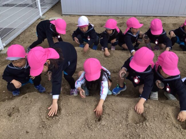 これまでいろいろな野菜を育ててきたので、種芋を穴に入れると、その上に優しく土をかぶせ、上手に植えていました。種芋を植えた後に、「おいしくなあれ」「大きくなあれ」と声をかけている姿があり、とても可愛かったです