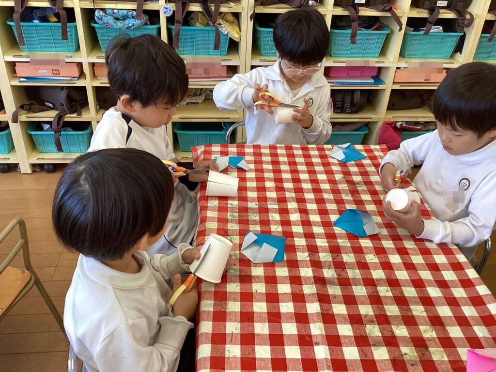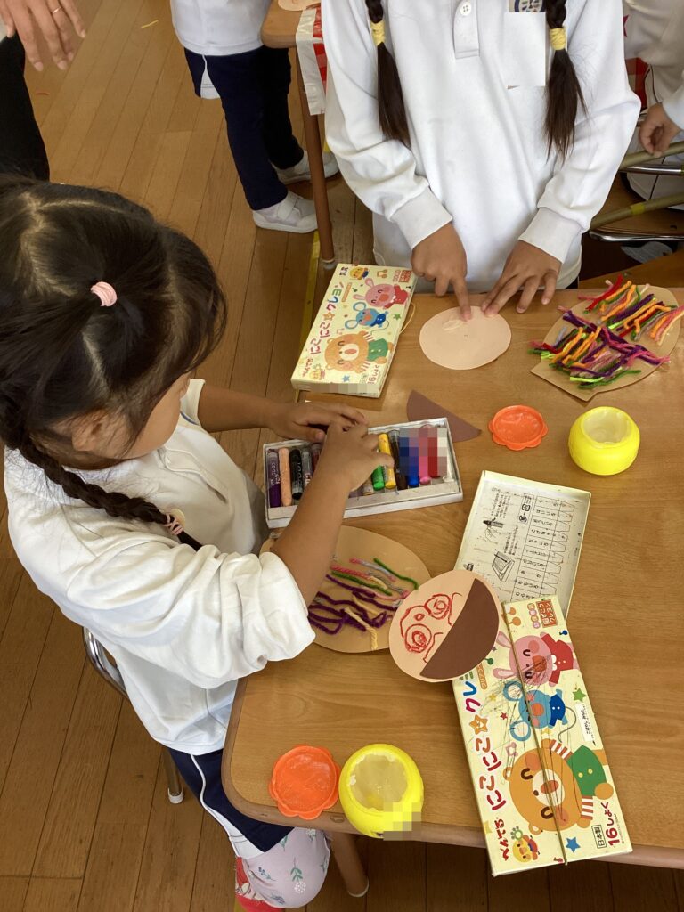 未分類 秋の製作をしたよ(4歳児) 2025.11.07 今週はきのこ、みのむし、くりの製作をしました。 きのこ製作では、けずり絵に挑戦。 クレヨンで帽子をカラフルに塗ったあと、そのうえを真っ黒に塗りつぶしました。 それから割り箸で削ると、なんと!綺麗な色が出てきました!素敵な帽子が出来たね。 みのむし製作では、毛糸の服を着させてあげました。 「あったかそうだね」「この色がいいね」などと話し合いながら製作を楽しみました。 くり製作では、紙コップを切り、折り紙でくりを折りました。 それぞれ好きな色でくりを作り、いろんな作品が出来上がりました。 リトミックがありました!(3歳児クラス) 前の記事