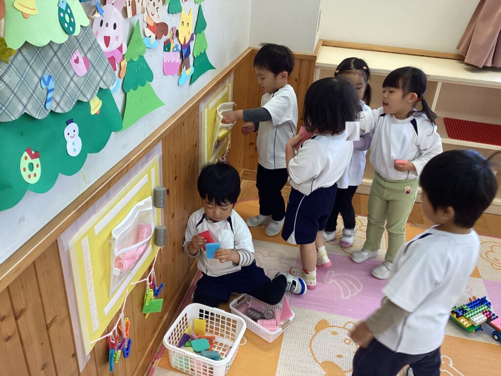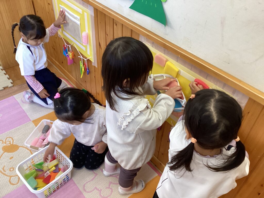 別のところにくっつけてみたりと考えながら遊ぶ姿が見られました。