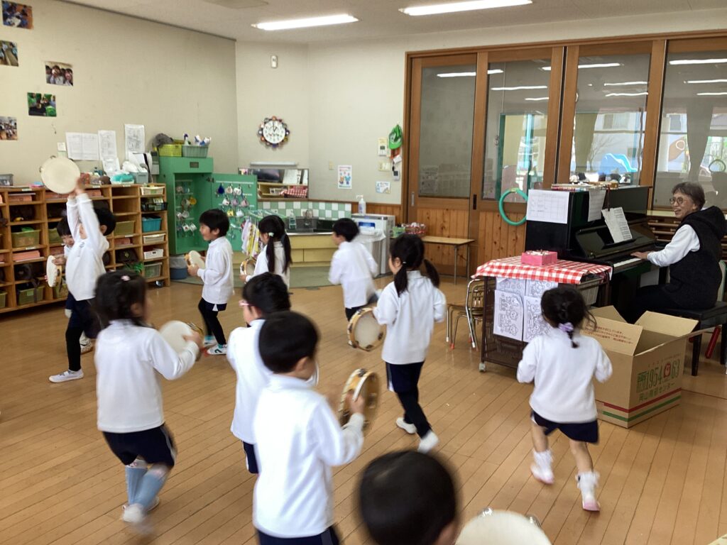 リトミックがありました!(3歳児クラス) 2026.03.23 LINE note 今学期最後のリトミックがありました!園長先生が来ると自然に「ターター!ティティティ!」と口ずさむ子どもたちの姿も見られました!タンバリンを使って王様になりきったり車のハンドルにして走ったりして楽しみました♪ 年中さんになってもリトミックがあるから楽しみだね! LINE note 令和8年3月23日(月) 前の記事
